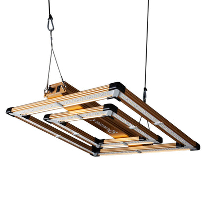 These IP65-rated LEDs are dust-tight and water-resistant, ensuring durability and reliability in challenging grow environments. With a low-profile aluminum frame and silent, fanless operation, they’re perfect for stealthy, efficient grow setups. Each unit comes complete with ratchet hangers and power cable for a plug-and-grow experience.