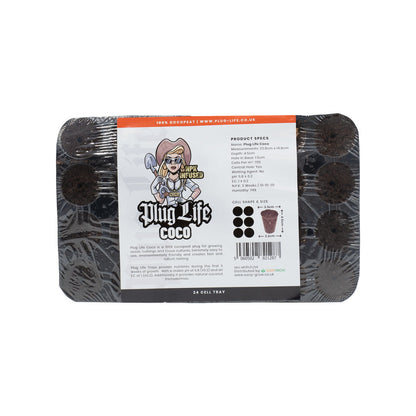 100% Coco Plug Life 24 Tray is a ready-to-use propagation solution made from pure, buffered coco coir. Designed for starting seeds or rooting cuttings, these organic plugs are housed in a convenient 24-cell tray—perfect for maintaining structure and moisture during early-stage growth in hydroponic systems, soil, or coco setups. The clean, pathogen-free coco encourages strong germination and healthy root zone development, while the pre-formed holes make transplanting easy and stress-free. Whether you're growing herbs, vegetables, or flowers, these plugs offer excellent water retention and air exchange, boosting early root performance. Ideal for use with domes, trays, and automated irrigation systems, 100% Coco Plug Life trays are the perfect start to a high-yield grow. Key Features: 24 organic coco plugs in a sturdy tray Perfect for seed germination and rooting cuttings Promotes early root zone growth and stability 100% pure, buffered coco coir – no additives or binders Excellent water retention and aeration properties Compatible with hydroponic systems, coco, and soil Works with humidity domes and heat mats Suitable for use with automated irrigation setups