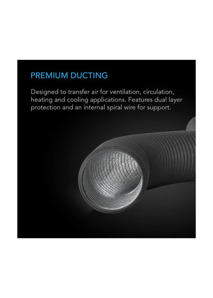 AC Infinity Flexible Four-Layer Ducting is a premium-grade ventilation hose designed to support efficient airflow and environmental control in hydroponic systems and grow rooms. Constructed with four layers—including dual aluminum, PET, and a steel-wire spiral—this ducting offers superior durability, flexibility, and noise reduction. Its insulated multi-layer design resists tearing and helps dampen fan noise and vibration, improving stealth while maintaining optimal temperatures and humidity around the root zone. It’s ideal for connecting inline fans, carbon filters, silencers, and ducting accessories in tents, greenhouses, or commercial setups. The flexible build makes it easy to install in tight corners or custom configurations. Whether you're managing intake, exhaust, or circulation airflow, this ducting ensures stable performance alongside automated irrigation and other grow room tech. Key Features: Four-layer construction: aluminum, PET, and steel-wire support Durable and flexible for easy routing in hydroponic systems Minimizes vibration and noise for quiet grow room operation Supports consistent temperature and airflow control Enhances root zone stability through environmental precision Ideal for intake, exhaust, and fan/filter connections Flame-retardant and tear-resistant design Compatible with all AC Infinity fans and automated irrigation environments