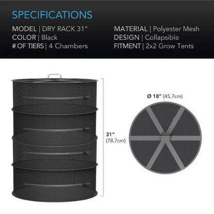 AC Infinity 4-Tier Hanging Drying Rack 2x2 Fit is the perfect solution for drying herbs, flowers, and plants in compact spaces. Designed to fit inside 2x2 grow tents, it features four breathable mesh tiers that promote even airflow and prevent mold and mildew. The zippered enclosure keeps contents secure and free from pests. Durable and collapsible, this rack folds flat for easy storage, making it ideal for growers needing a tidy, efficient drying setup.
