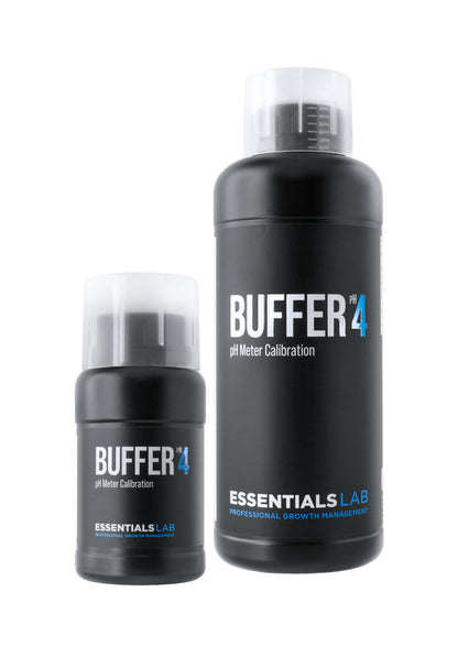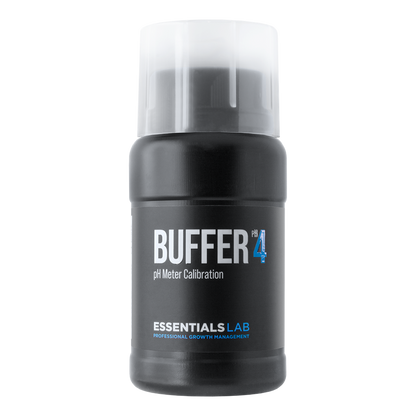 Essentials LAB Buffer 4 is a precision calibration solution with a fixed pH of 4.0, used to calibrate pH meters and pens for accurate nutrient monitoring. This acidic buffer is essential for calibrating equipment that needs dual-point accuracy (e.g., pH 7.0 and pH 4.0), especially when working in environments where acidic nutrient solutions or runoff are common.