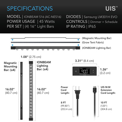 AC Infinity Ionbeam S16, Full Spectrum Led Grow Light Bars, 407mm