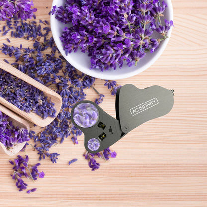AC Infinity Jewellers Loupe with LED & Dual Lenses offers precise magnification for inspecting plants, trichomes, or small components. It features two lenses (30x and 60x) and built-in LED lighting for clear visibility in any lighting condition. Compact and foldable, it fits easily into your pocket or grow kit. Ideal for growers, hobbyists, and anyone needing high-detail magnification on the go.