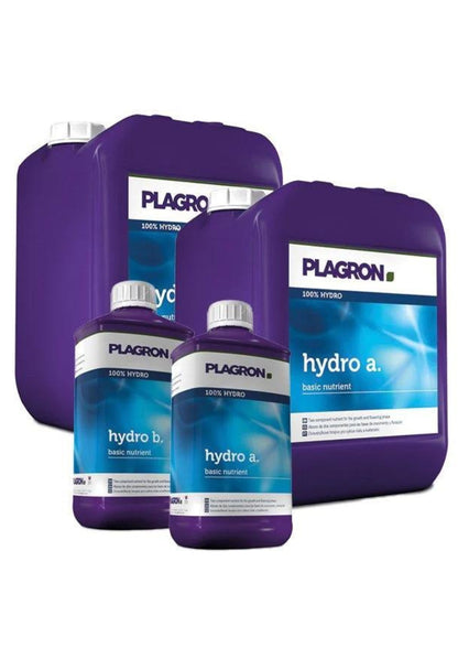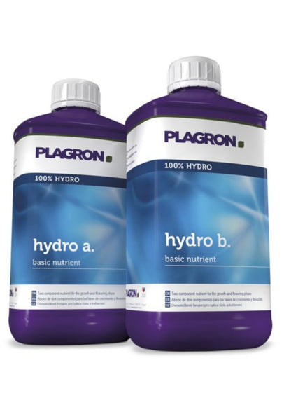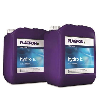 Plagron Hydro A+B is a two-part base nutrient system designed for optimal plant growth in hydroponic systems. This complete mineral formula delivers the essential macro and micronutrients needed during both vegetative and flowering stages, ensuring consistent development, strong structure, and vibrant foliage. Formulated for hard and soft water compatibility, Hydro A+B provides balanced nutrient uptake and promotes a healthy, active root zone—crucial for high-performance hydro setups. It’s ideal for recirculating systems and works in combination with Plagron additives for tailored feeding programs. Easy to mix and highly soluble, Hydro A+B is perfect for growers using hand-feeding or automated irrigation systems. Key Features: Complete 2-part nutrient for hydroponic growing Suitable for vegetative and flowering stages Promotes optimal nutrient uptake and plant vitality Supports root zone development and overall health Works in all recirculating hydro systems Compatible with soft or hard water conditions Mixes cleanly and won’t clog irrigation lines Ideal for use with automated irrigation setups
